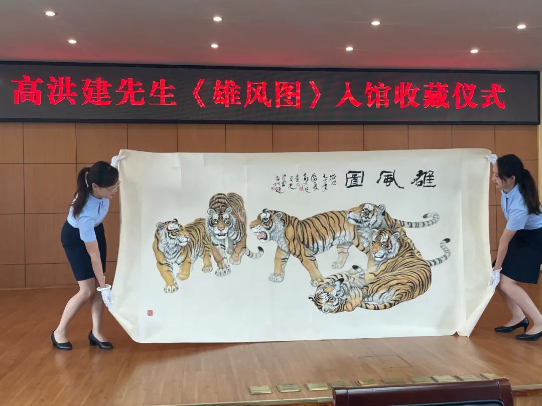 2022年是农历虎年,也是党的二十大召开之年,是我国进入全面建设社会主义现代化国家、向第二个百年奋斗目标进军新征程的重要一年。高洪建先生将蕴含祖国强大、虎虎生气寓意的画作《雄风图》捐赠四川省档案馆永久收藏,丰富了馆藏艺术档案资源,画作也实现了从作品到档案的升华。