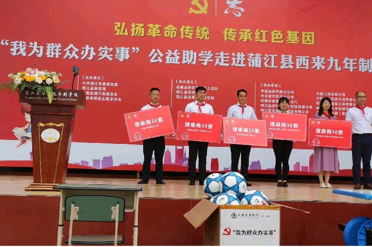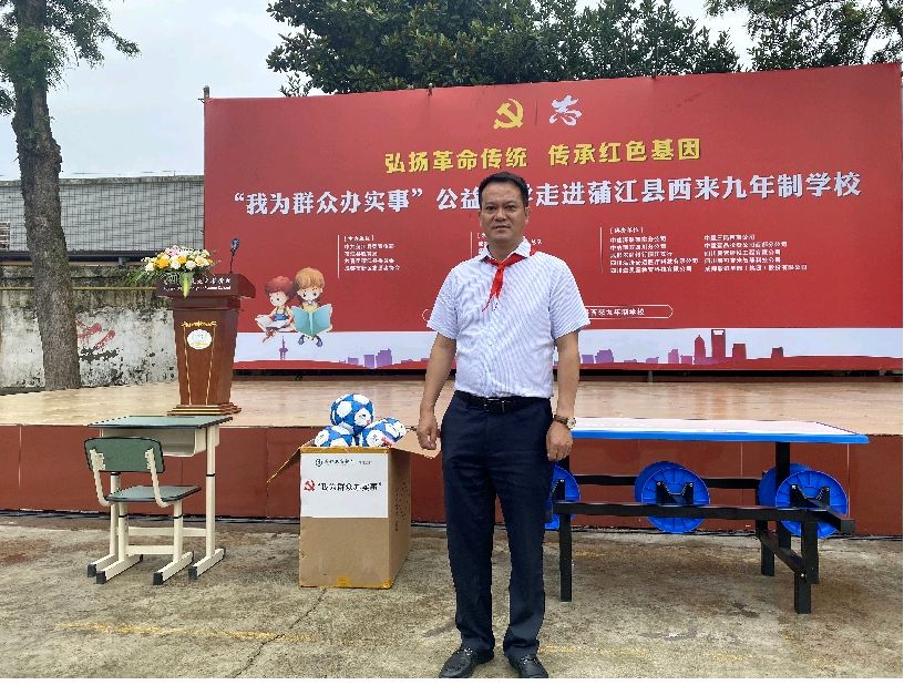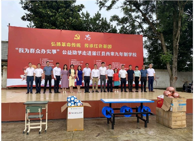 6月1日,在一年一度的“六一”儿童节之际,由中共蒲江县委宣传部、蒲江县教育局、共青团蒲江县委、成都高新区志愿者协会主办,成都高新区芳草义工总队、蒲江县志愿者协会、蒲江县西来九年制学校承办的暖意浓浓的爱心活动“我为群众办实事,公益助学进校园”志愿服务活动在蒲江县西来镇九年制学校举行。