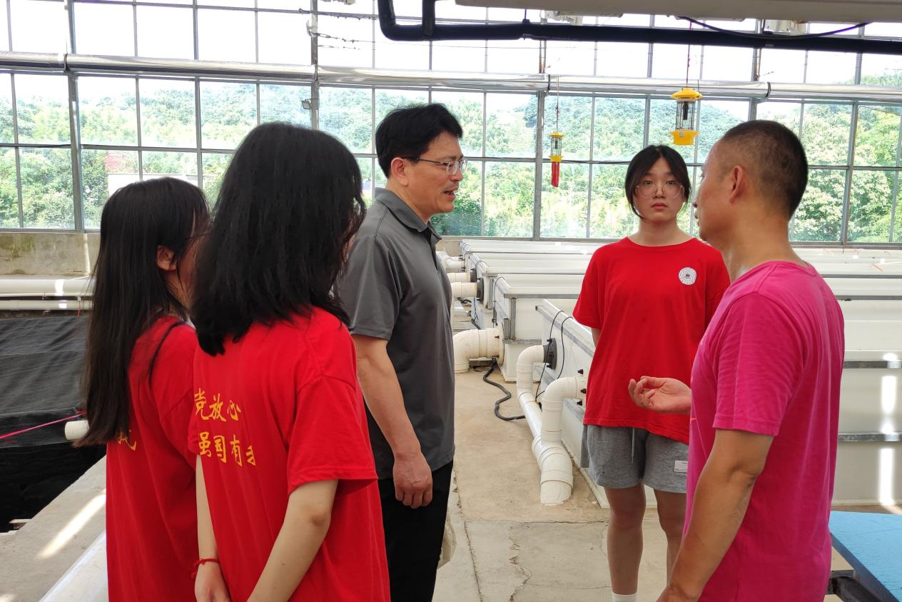 图为澄德现代庄园工作人员向实践队员介绍“鱼菜共生”项目。通讯员 陈文杰 摄