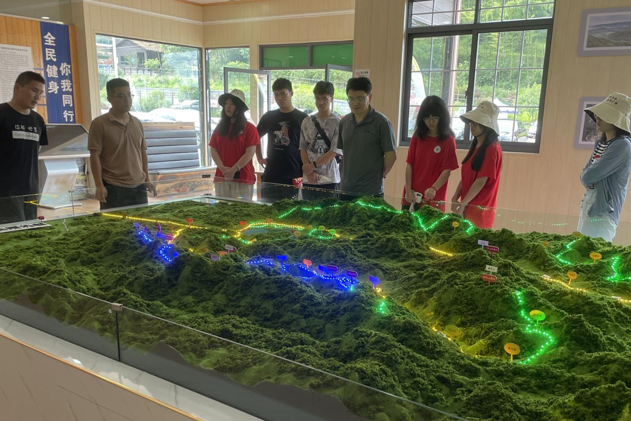 图为实践队员观看笄山省级森林公园规划沙盘。通讯员 费子贤 摄