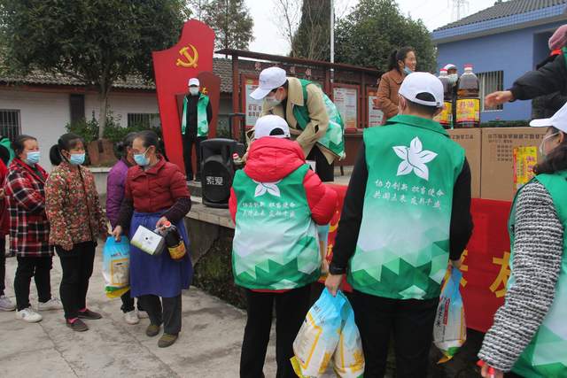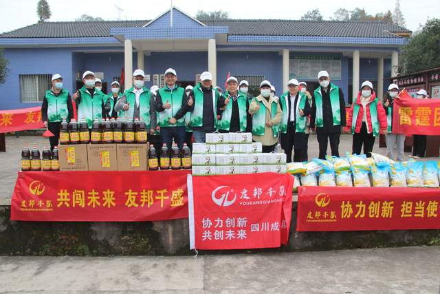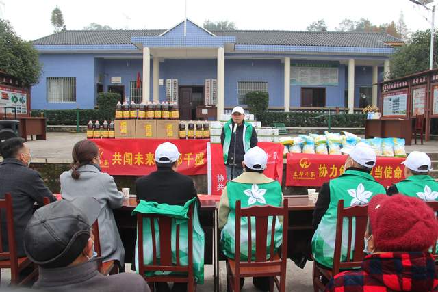 央媒头条【记者袁军】2022年12月4日,友邦千盛走进洪雅县将军镇保坪村开展慈善公益活动。30多位志愿者为村里老人送去米,面,油等生活用品。