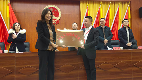 仪陇县委常委、统战部部长陈小琴为仪陇县福临乡贤商会授牌