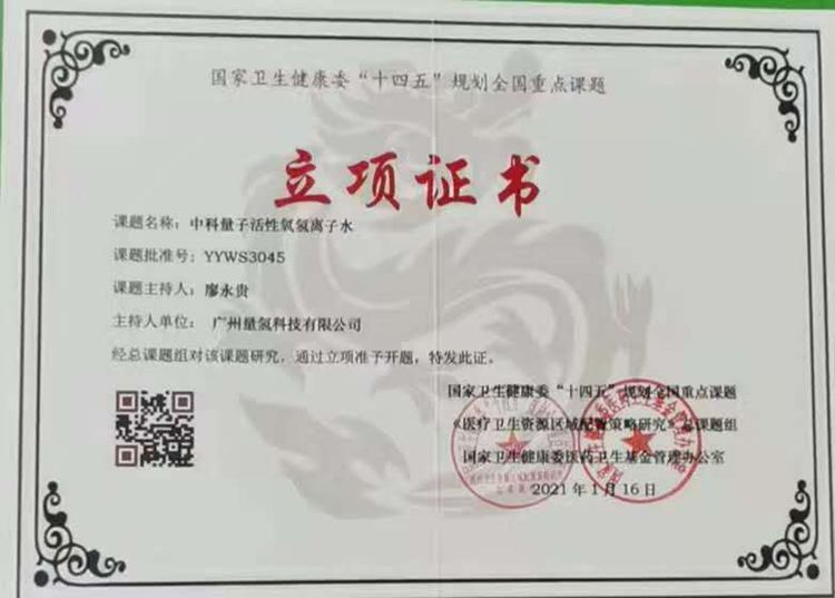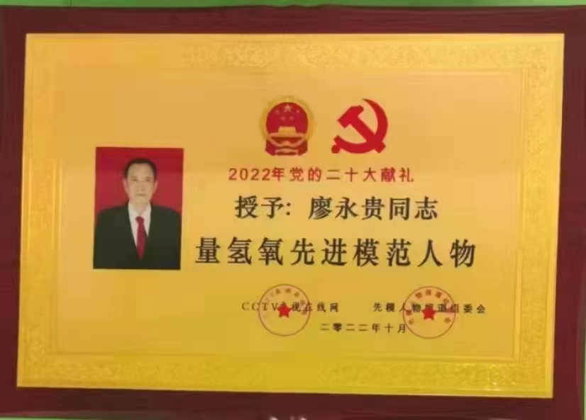 量子氢氧健康创始人-长寿哥-廖永贵 ,男,广东省梅州市人,1942年出生。现任广东省健康管理发展促进会常务副会长、广州量氢科技有限公司董事长、广州量氢细胞疗养专业委员会主任,中国管理科学研究院科技管理研究生自然疗法示范基地主任,国家卫生健康委“十四五”规划全国重点课题中科量子氢氧离子水课题主持人。