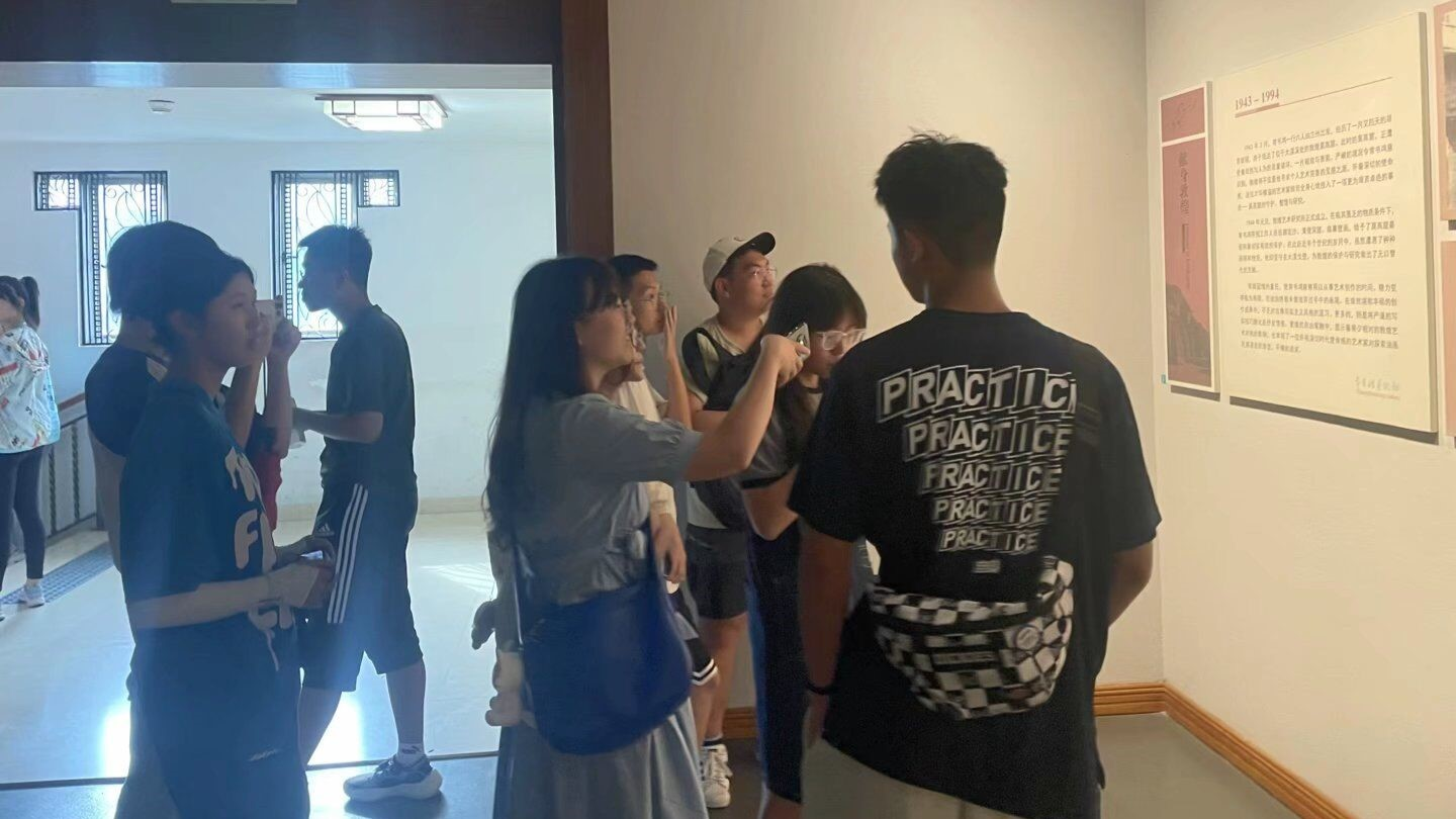 图二: 支教团队成员在阅览常书鸿老艺术家的事迹