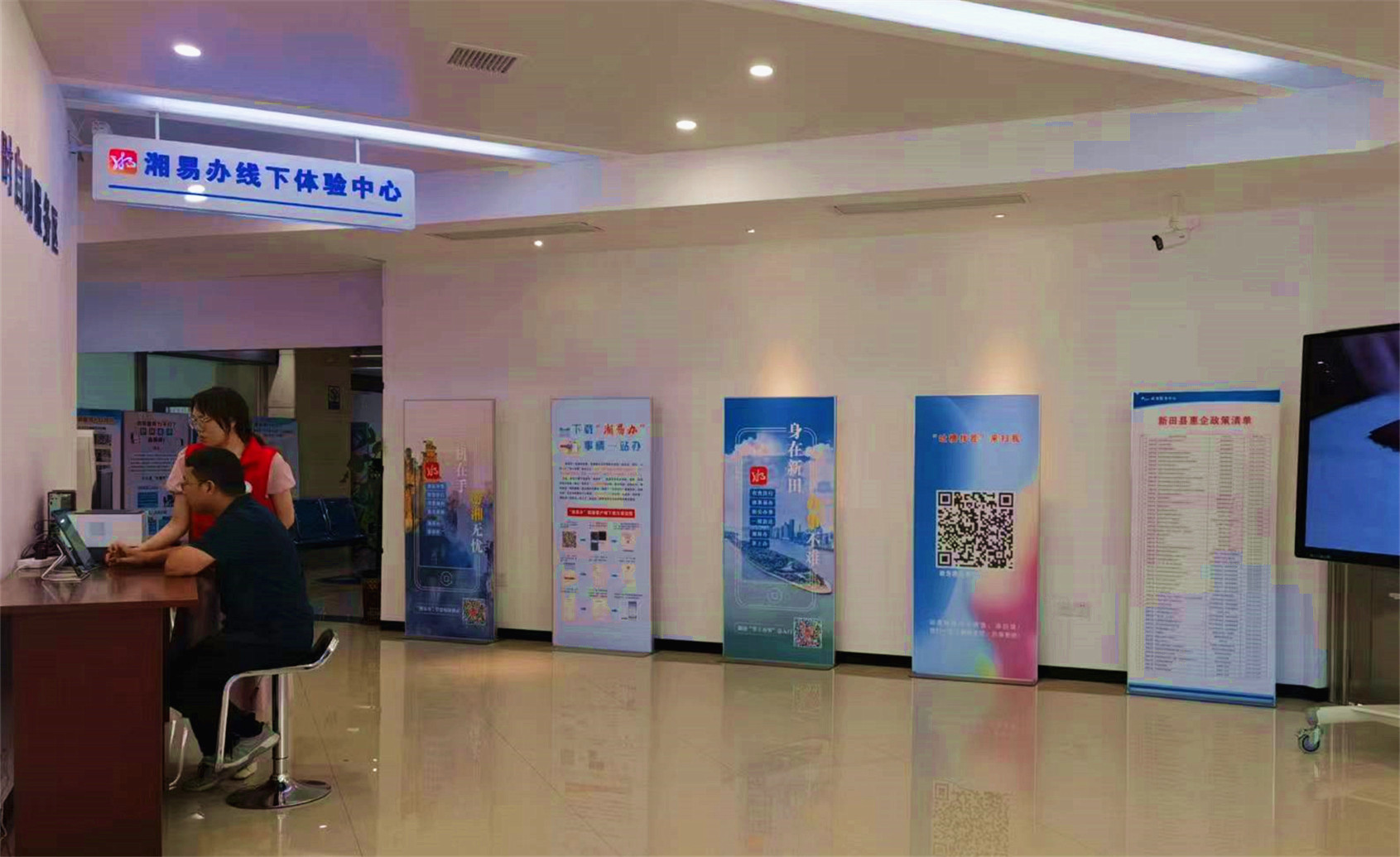 “湘易办”线下体验中心,以大、小屏互联互动的形式为群众提供更直观、更便捷、更满意的“指尖触达、掌上通办”体验。该体验中心配置了一块信息发布显示屏、双屏嵌入式液晶触摸互动台、专用体验平板等设备设施,用户通过注册、人脸识别验证后,即可全景式、沉浸式体验查询、办理等相关业务。