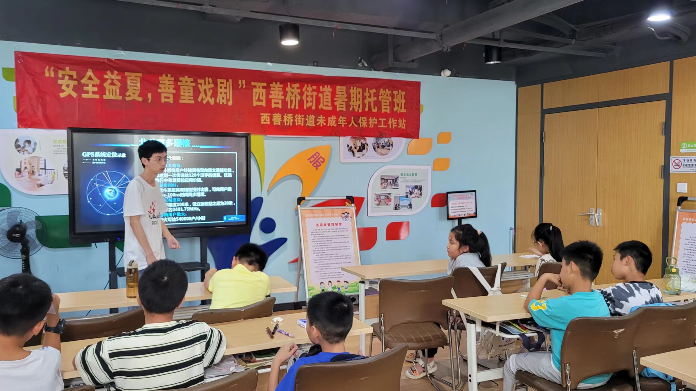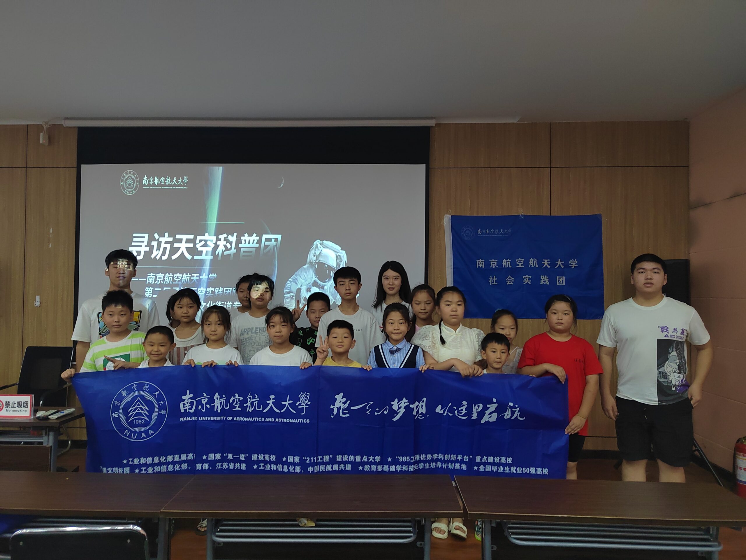 7月18日和21日,南京实践组前往南京市雨花台区西善桥街道未成年人保护工作站开展航空航天趣味科普小课堂。团队成员结合史实与影像资料,为小朋友们讲解了世界航空航天发展史,科普了航空器的种类与其进步过程,讲述了载人航天器的发展历史,让同学们领略了航空航天技术的辉煌历史与其飞速发展,激起他们对航空航天事业的兴趣与热情。