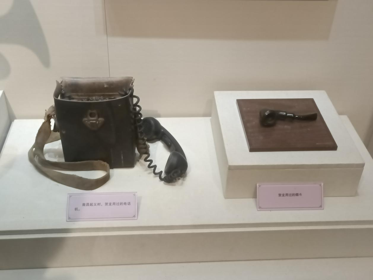 图为贺龙同志用过的电话机与烟斗。中国青年网通讯员 刘平波 供图