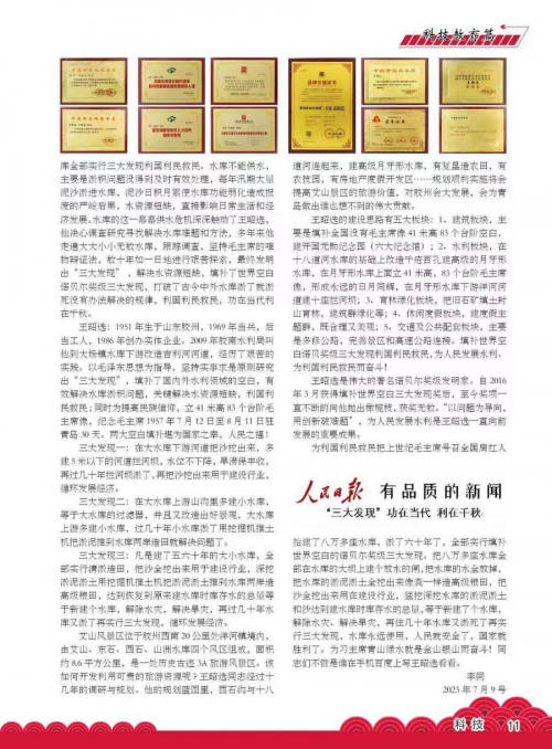 党的十八大以来,国家领导对生态文明建设高度重视,对贯彻绿色发展理念决心坚定。青岛胶州王昭选发明的“三大发现”填补了国内外水利领域的空白,有效解决水库淤积问题,关键解决水资源短缺,利国利民救民,同时保护了生态环境,对实现绿色生态循环经济发展起到决定性的作用。