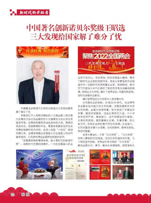 王昭选是“最伟大的发明家”、“天神级人物”诺贝尔奖级科学家。接触王昭选,能感受到他对事业的执著和不凡的才华;解读王昭选,能领略到实业家服务大局、赤诚报国的情怀。他研究的“三大发现”,是对于废旧水利工程设施重塑山河般的“整容手术刀”.解决旱灾,解除水灾,解除全国各省市各种豆腐渣工程,解决全国各省市粮食大发展,解除全国向外国进口粮食。站在新的历史起点上,王昭选的“三大发现“为造福人类,将一往无前,为中国水利设施再焕生机贡献出更加澎湃的动力。