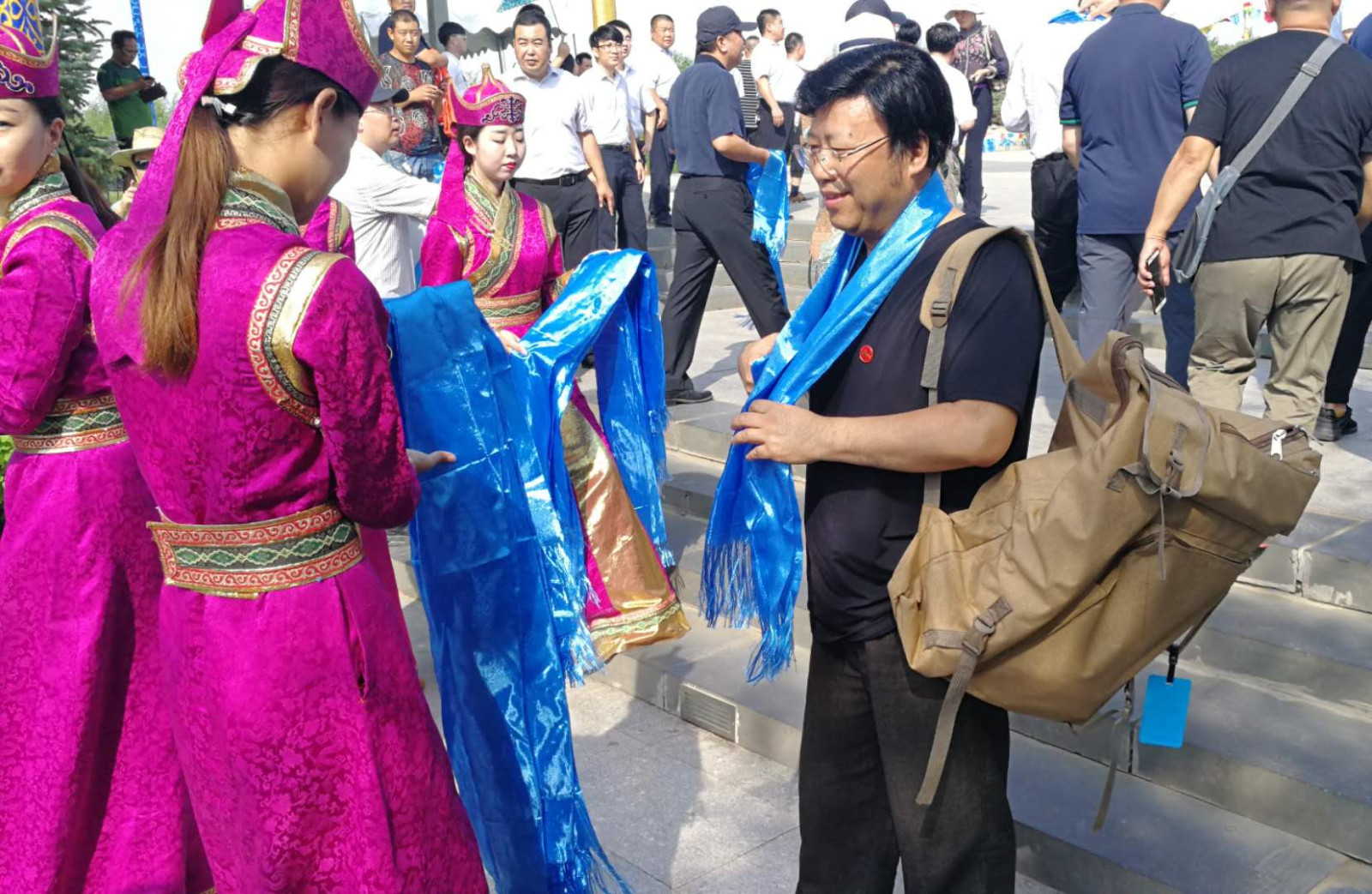 当地群众向孔维克院长赠送蓝色哈达