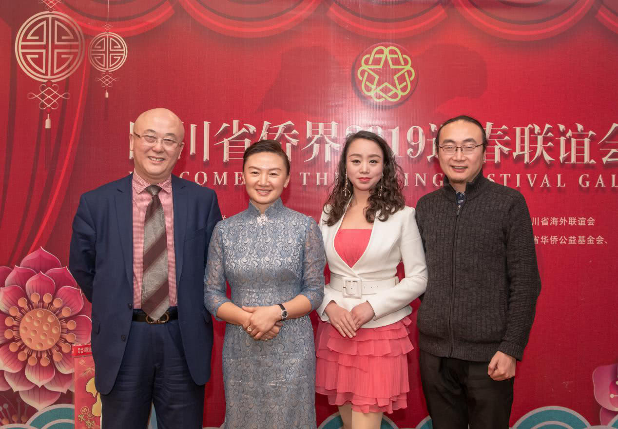 海外华文媒体代表:世界文化产业交流联合会会长、马来西亚《海内外》杂志社长续炳义,一带一路科学技术协会教育促进会主任、澳门卫视总监刘继明,国际媒体组织(IMO)干事长、中国记录通讯社社长陈学刚,中国形象大使全球选拔赛组委会执行主席黄美等也应邀参加迎新联谊会,与中国侨联副主席、四川省侨联主席刘以勤、四川省侨联文化交流促进委员会会长宋汶栗合影。