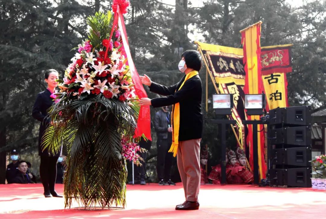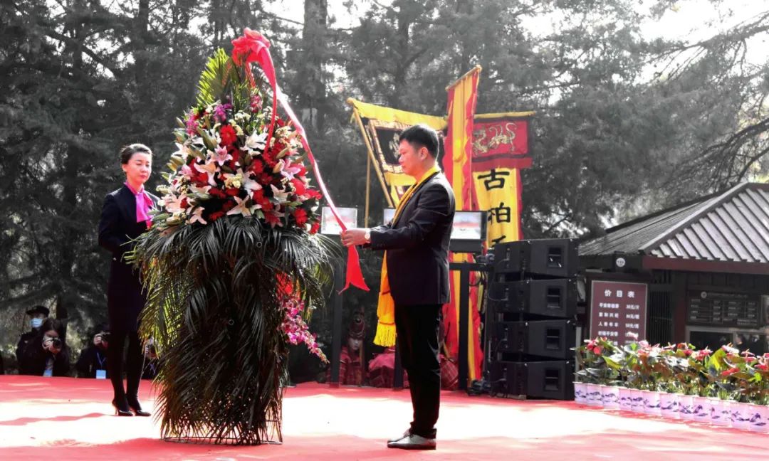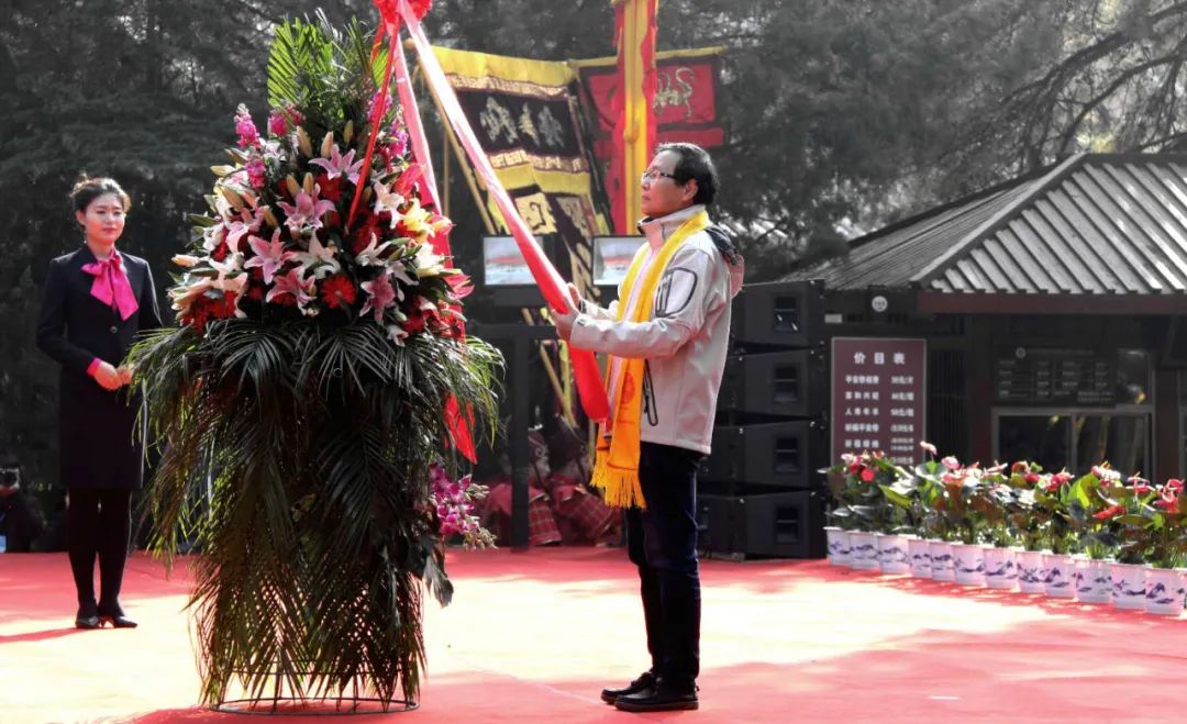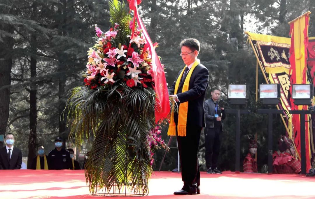 中共陕西省委黄帝陵文化园区工作委员会书记、陕西省黄帝陵文化园区管委会主任、中共黄陵县委书记孟中华先生代表中共陕西省委黄帝陵文化园区工作委员会、陕西省黄帝陵文化园区管理委员会、中共黄陵县委 敬献花篮