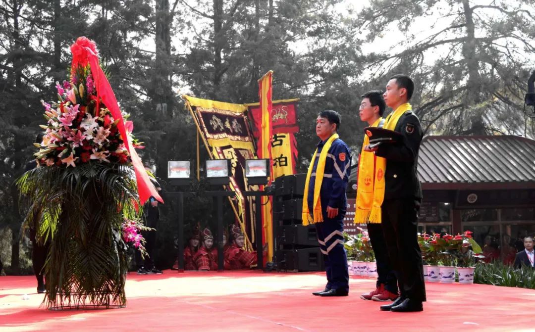 黄陵县人大常委会主任高育民先生、黄陵县人民政府县长高勇先生、政协黄陵县委员会副主席杨永泰先生、黄帝陵管理局党总支副书记张海泉先生代表黄陵县人大常委会、黄陵县人民政府、政协黄陵县委员会、黄帝陵管理局 敬献花篮