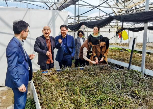 ▲建攀集团工作人员带客户考察农业小微企业育苗基地。