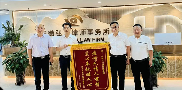 “疫情无情人有情,爱心奉献暖人心”,颍东区河东办事处訾营社区赠安徽弘大律师事务所锦旗 70121 • 今日头条 • 2022-06-05 13:51 中国记录通讯社安徽阜阳消息(记者 傅友君):2022年6月2日下午,安徽阜阳市司法局副局长赵伟、阜阳市依法治市办公室秘书科科长张涛、阜阳市司法局律师工作科科长侯洁琼陪同颍东区河东办事处訾营社区副书记訾如山、社区主任訾如雷等一行人,为弘大所赠送一面载有“疫情无情人有情,爱心奉献暖人”的锦旗,以此感谢在疫情防控时期,弘大律所为訾营社区疫情防控工作的支持。弘大所党支部书记张华、执行合伙人杨峰主任,带领本所部分律师参与了本次活动。 张华书记陪同赵局长等一行人,依次参观了本所接待大厅、党员活动室、会议室、律师办公室等,随后带领本所律师向到场领导作工作汇报。 赵局长强调,弘大所作为阜阳市一家大所,积极参与公益活动,做好公益事业,为阜阳律所做到了榜样带头作用。訾书记表示,对此疫情防控期间弘大所为社区所捐赠的防疫物资表示衷心的感谢,同时表示此次赠送锦旗也是对弘大所勇于承担社会责任的肯定。 一面锦旗,一声感谢,传递的不仅是感激之情,也是赞许和肯定,更是一种鞭策和激励。公益事业无大小,弘大所会将公益精神一直坚持下去,极尽所能为阜城建设发展尽到一份绵薄之力。 赞 (5) 分享到: 生成海报 0 有风光有文化、有速度有激情……今天,海盐南北湖畔端午风情醉游人 上一篇 2022-06-04 10:51 中国红又耀太空 下一篇 2022-06-06 14:19 相关推荐胡老的医术人生我有青青学堂,墨香能致远第四届国际军地医药卫生创新大会 新闻发布会成功召开山东煤炭卫生学校喜庆第 40 个教师节山东临朐 提升监管效能增强企业活力心有所向 一心向党 耄耋老人贺恵邦"坚定、坚守、坚持"的力量——王美山【重庆】探索旱稻种植新“粮”策 新质生产力助力重庆旱稻种植产业高质量发展学习中华传统礼仪文化 让蒙尘的美玉重放光泽党史学习教育丨新化县中医医院举办“学史崇德”主题研讨会有了你,孤者不孤,困者不困 ——访蒙阴县孤困儿童辅导志愿团成员 王翠花