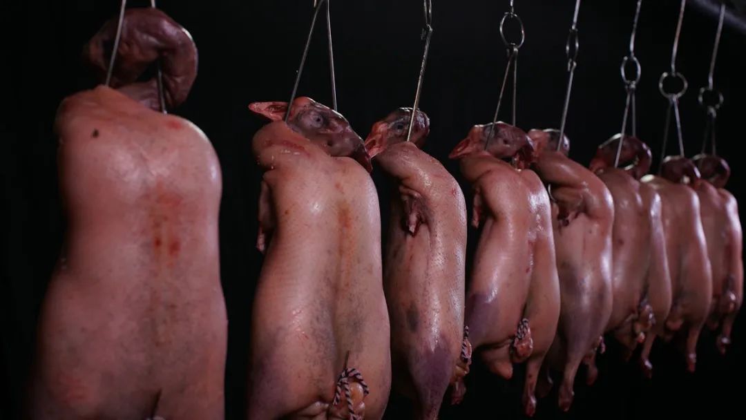 其中最为吸引人的一步,便是充气。要让烧鹅拥有饱满的外观,就需要注意烧鹅技术的前期处理,比如充气、缝针、烫皮等步骤,特别是充气环节,要做到皮肉分离,表皮得到充分鼓起,这样烧鹅的外形就会展现出饱满的状态,烧鹅打气打得好,对以后如何控制烧鹅的色泽和脆皮有很大的帮助,也是烧鹅体形塑造的关键步骤。