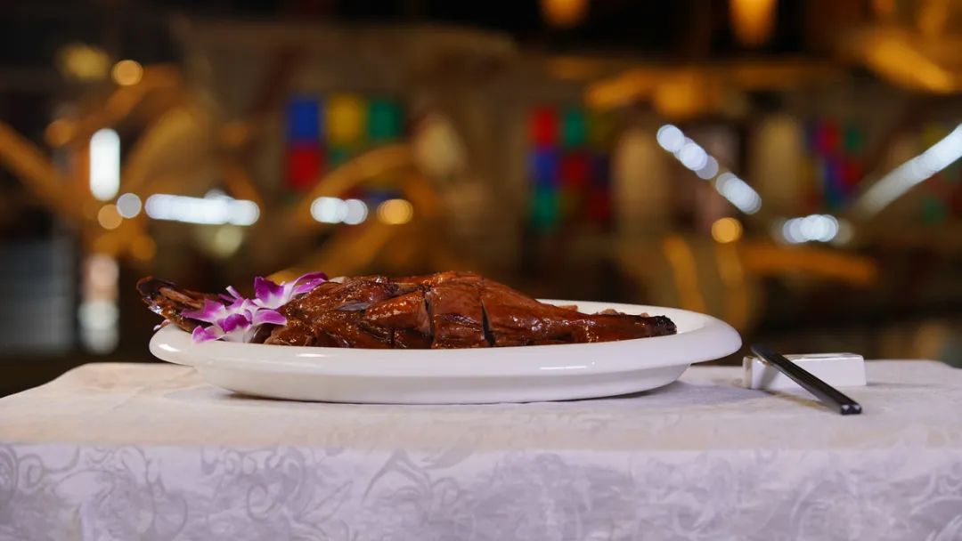 再者是香味,古井烧鹅的香一方面是得益于荔枝木与封闭泥炉的熏焗,另一方面则是采用了新会特产——陈皮作为腌料的结果。最后的烧鹅成品呈现肉嫩爽口、鲜香多汁、齿颊留香的特征。/坚守传统 古井风味/