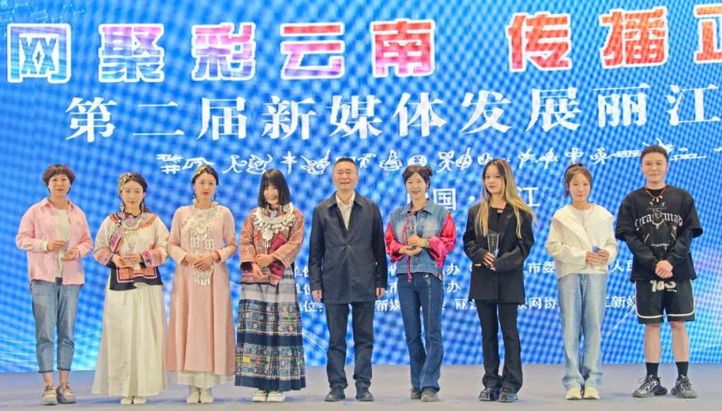 出席开幕会的领导及嘉宾为获得2022年度“丽江网络宣传精品”“丽江网络推荐官”颁奖并合影留念。(本报记者 钱磊 摄)