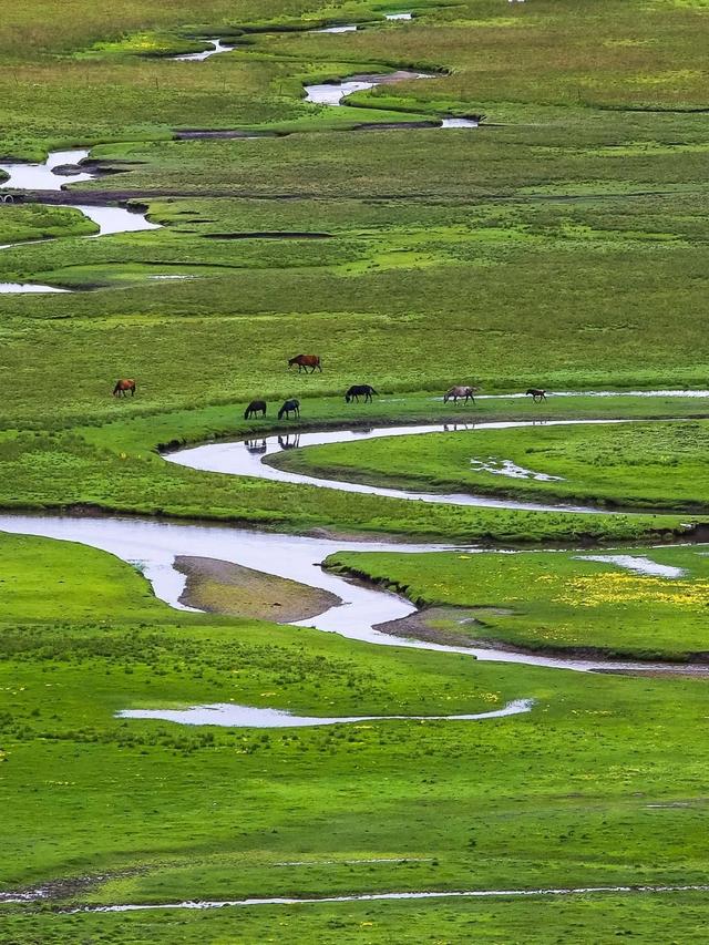 加上川西北高原得天独厚的寒冷湿润气候,蒸发量却相对较少,最终造就了世界上面积最大、海拔最高的泥炭沼泽——若尔盖沼泽湿地,也捧出了高原盆地上的芳草萋萋。